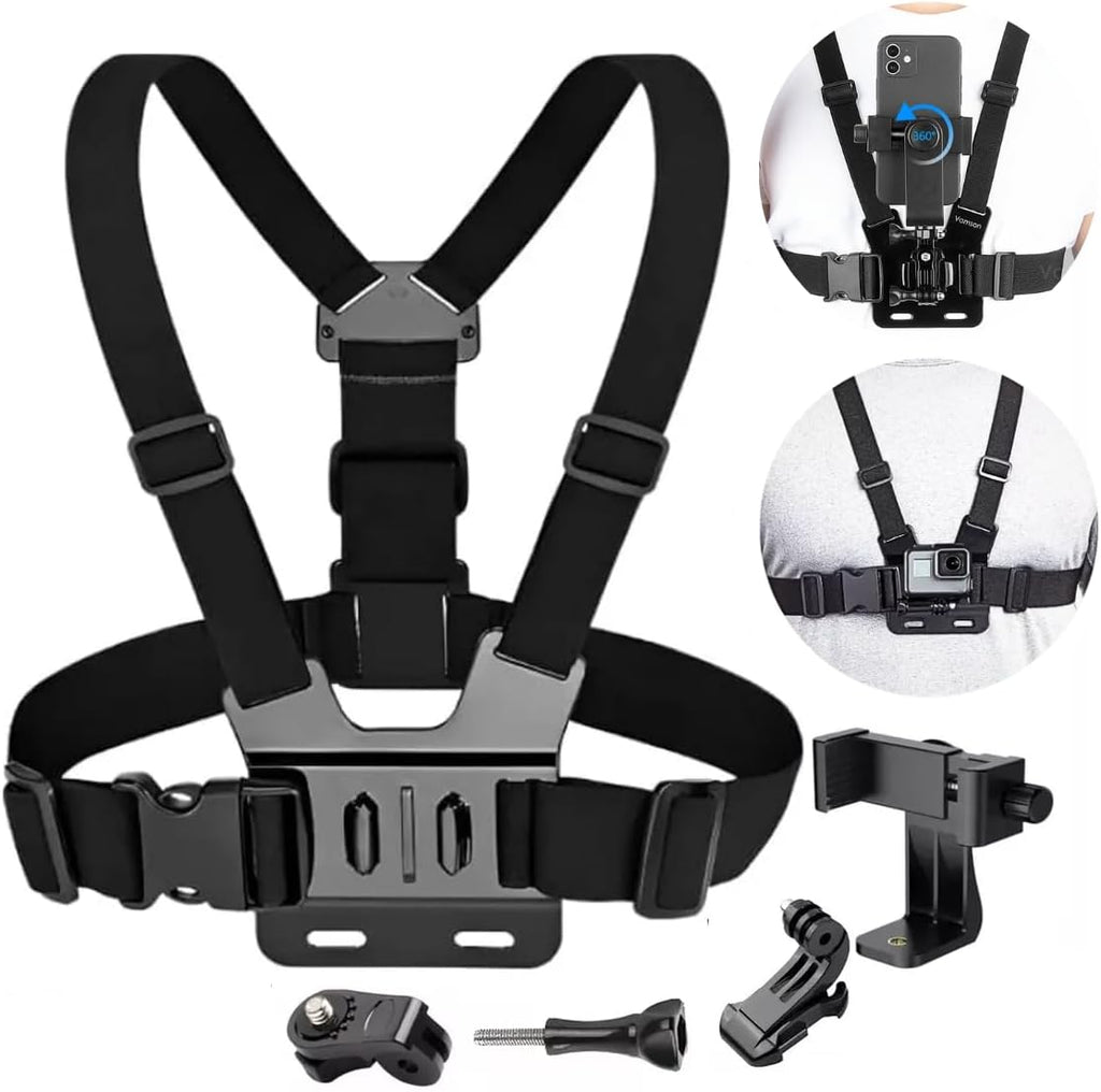 O Suporte Peitoral Ajustável garante segurança, firmeza e estabilidade para celulares e câmeras de ação em qualquer atividade.