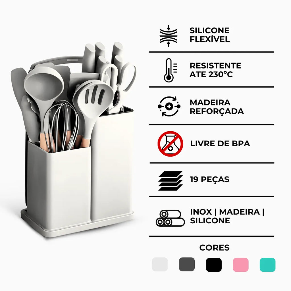 Kit Utensílios de Cozinha Jogo Completo 19 Peças